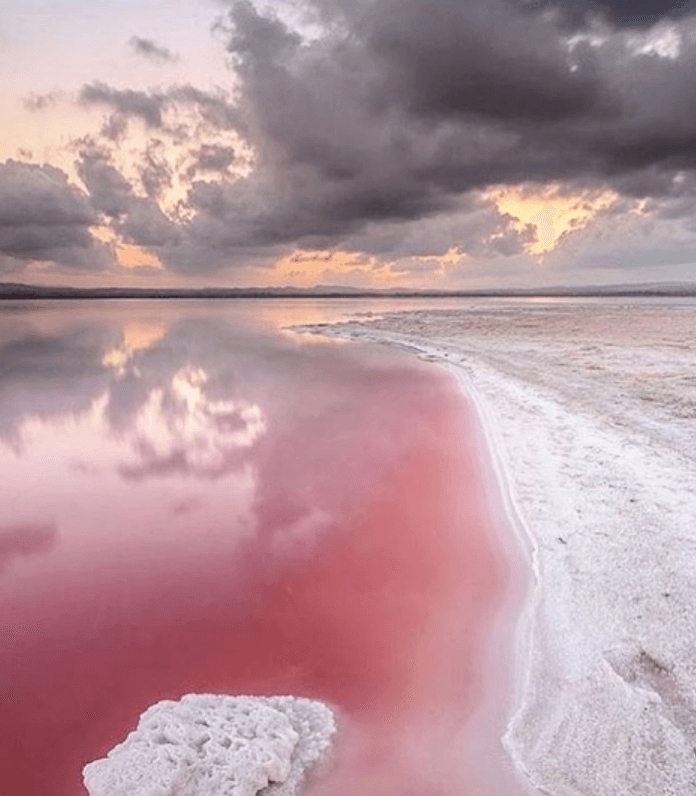 Pink lake Hillier is located on the middle island, the body of water is a bubble gum pink color. This pink lake is 10X times saltier than the ocean. It is surrounded by a thick wood of the eucalyptus tree and white sand. It is speculated that there are bacteria that live in a salt crust and the pink color of the lake is considered due to the presence of organisms like Dunaliella Salina.