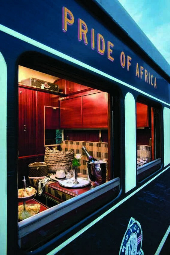 Rovos rail runs its train-hotel to a regular schedule on various routes throughout South Africa, from SA to Namibia and Tanzania. The train consist of restored Rhodesia Railways ( NRZ ) coaches with 2 lounge, 2 restaurant cars and private sleeping compartments, each with private ensuite facilities.